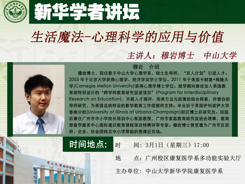 讲题:生活魔法-心理科学的应用与价值