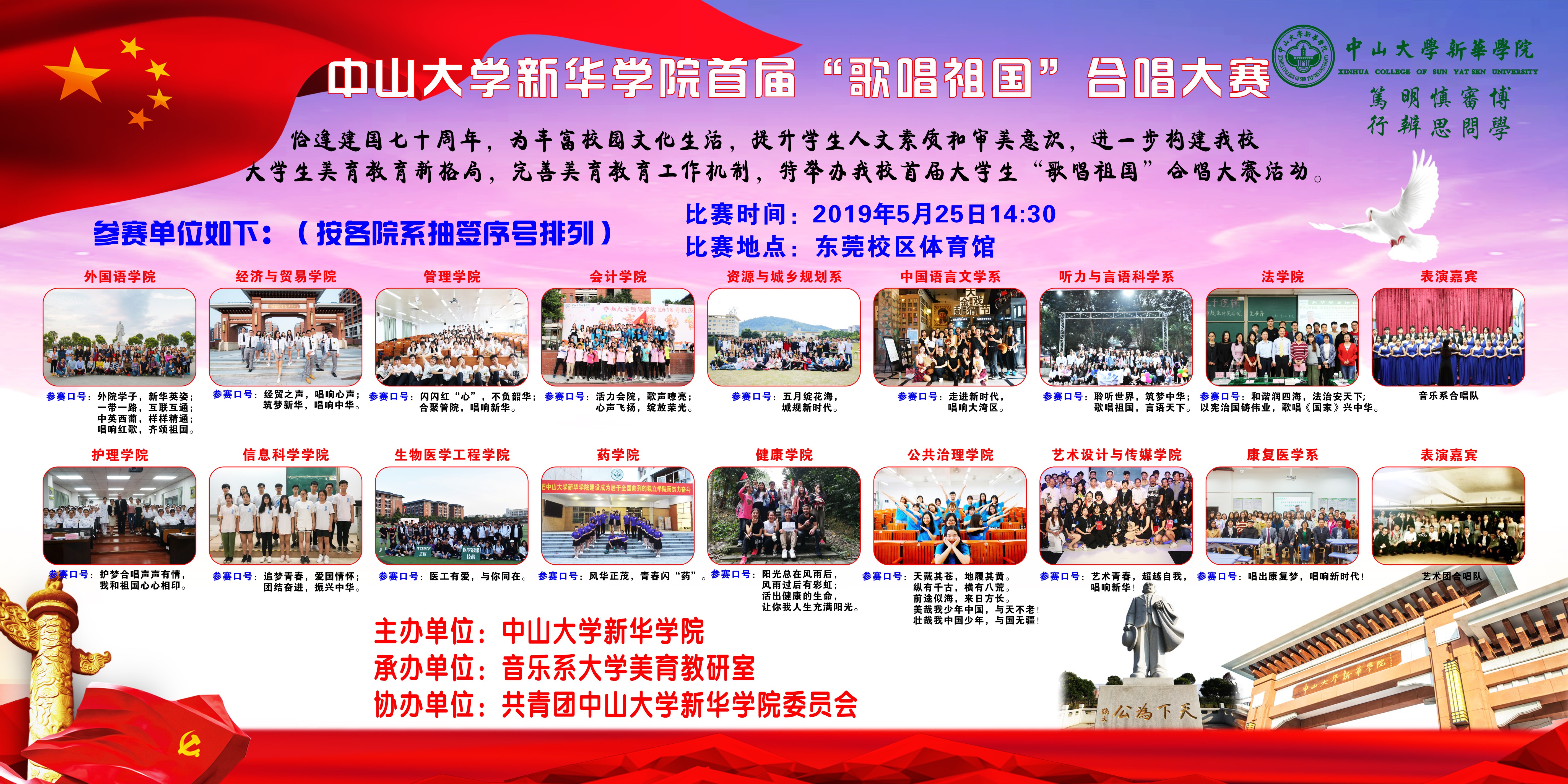 恰逢中华人民共和国成立七十周年,为丰富校园文化生活,提升学生人文素质和审美意识,进一步构建我校大学生美育教育新格局,完善美育教育工作机制,特举办我校首届大学生“歌唱祖国”合唱大赛活动。