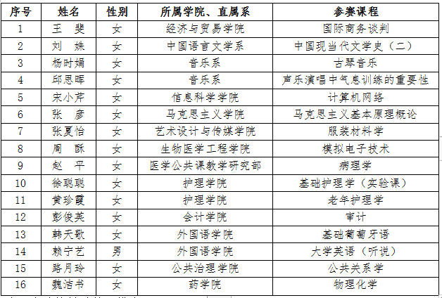 中山大学新华学院第九届中青年教师授课竞赛经过院系初赛、校级复赛等为期两个多月的过关斩将后,选拔出王斐等16名教师进入决赛。