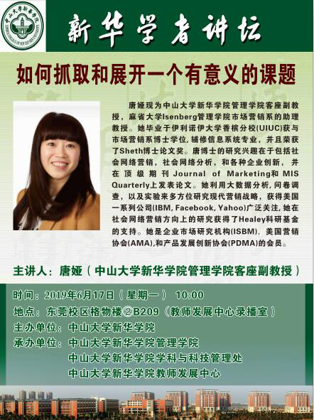 主讲人:唐娅 (中山大学新华学院管理学院客座副教授)