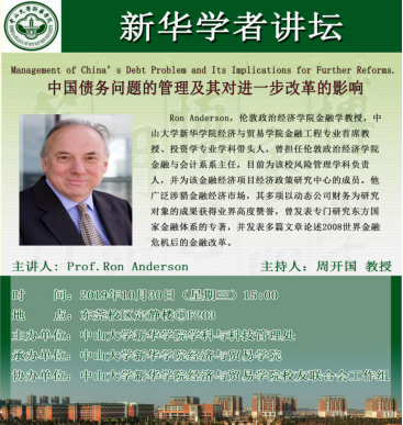 主讲 人:Prof.Ron Anderson,伦敦政治经济学院金融学教授,中山大学新华学院经济与贸易学院金融工程专业首席教授、投资学专业学科带头人
