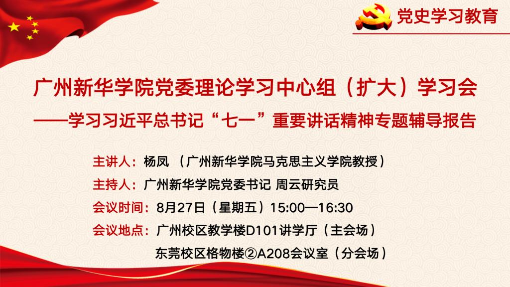 根据上级文件要求,结合学校党史学习教育工作计划安排,经学校党委研究,决定召开学校党委理论学习中心组(扩大)学习会——学习习近平总书记“七一”重要讲话精神专题辅导报告。