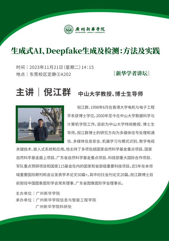 [学者讲坛]倪江群:生成式AI、Deepfake生成及检测:方法及实践