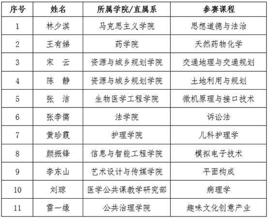 广东省高校教师教学创新大赛校级选拔赛决赛名单