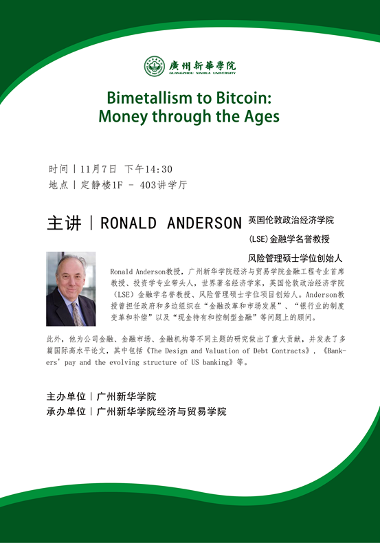 [学者讲坛]Ron Anderson教授:Bimetallism to Bitcoin:Money through the Ages