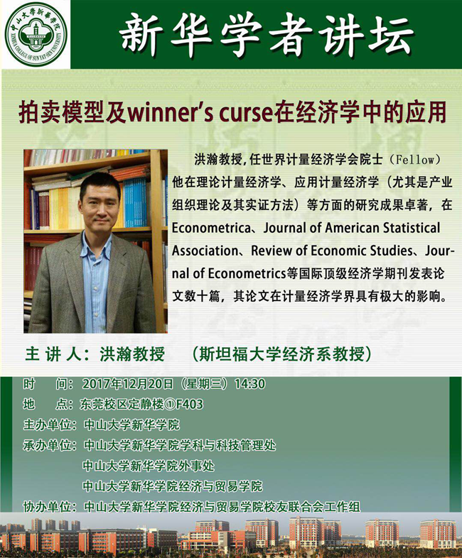 讲座主题:拍卖模型及winner's curse在经济学中的应用