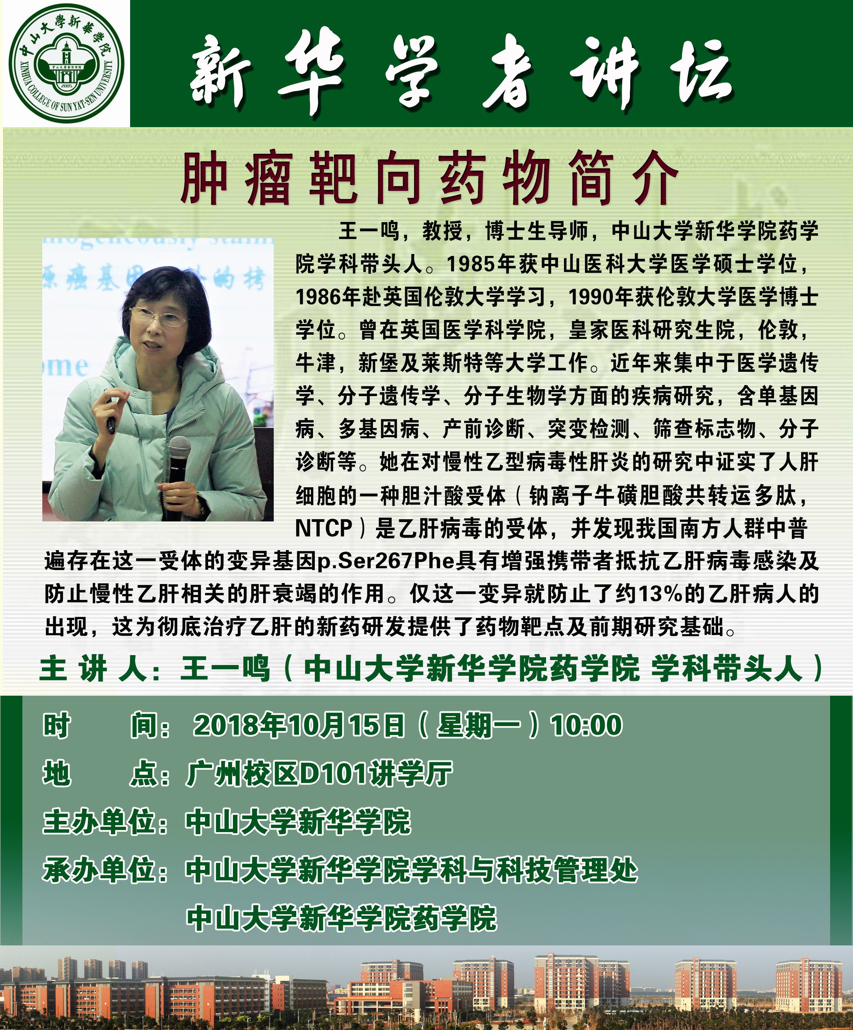 主 讲 人:王一鸣 (中山大学新华学院药学院 学科带头人)