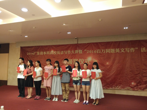 6月26日,2016广东省本科高校英语写作大赛暨2016“百万同题英文写作”决赛在广州举行。来自我院外国语言文学系14级英语专业学生高旭娜荣获英语专业组二等奖,经贸系15级投资学专业学生唐若昕荣获公共英语组三等奖。