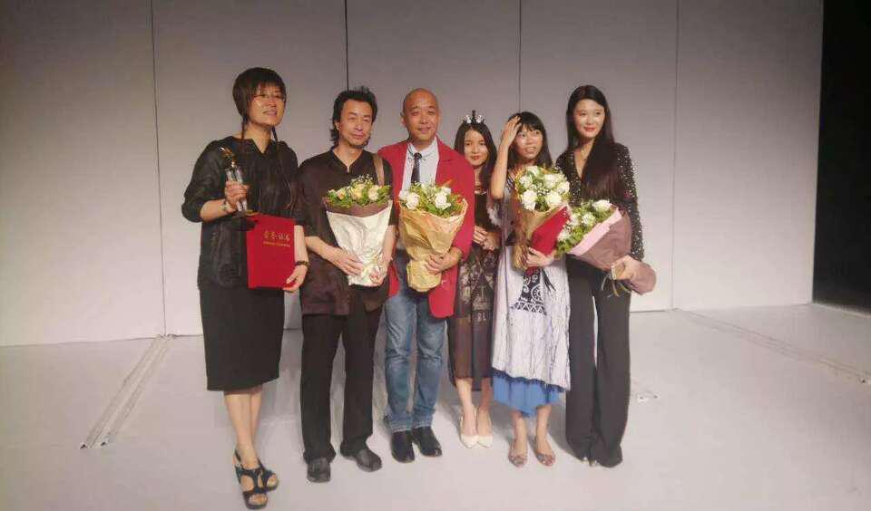 指定面料大赛带队老师、获奖同学与主办方合影