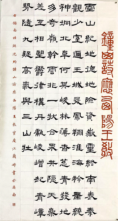 经专家评审,汪兰婷老师的毛笔书法作品《钟山诗应西阳王教》以遒劲笔力与典雅气韵荣获三等奖;雷坚老师的篆刻作品《寻堂治印留痕》则凭借古朴刀法与现代审美意趣的融合,在篆刻类别中斩获佳绩。