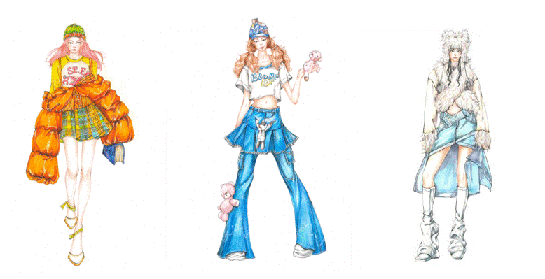 学院积极响应大赛号召,精心组织学生参赛,将大赛与服装设计表现技法课程紧密结合,持续构建“岗课赛证”融通的课程体系,注重培养学生的专业技能与职业素养。通过“以赛促教、以赛促学、以赛促创”的教学模式,有效促进了学生的理论知识与实际操作的深度融合,极大地提升了创新思维能力。