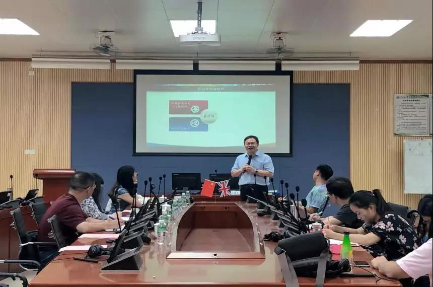 6月12日,由中山大学新华学院外国语学院主办的学术交流讲座“基于形成性评价的大学英语教学体系的理论构建——从框架到教材,到手段”在东莞校区格物楼②B605顺利举办。此次讲座由广东省大学英语教学指导委员会主任、广东外语外贸大学副校长刘建达教授担任主讲嘉宾,外国语学院执行院长廖益清主持,外国语学院全体教师及部分教辅人员到场聆听。