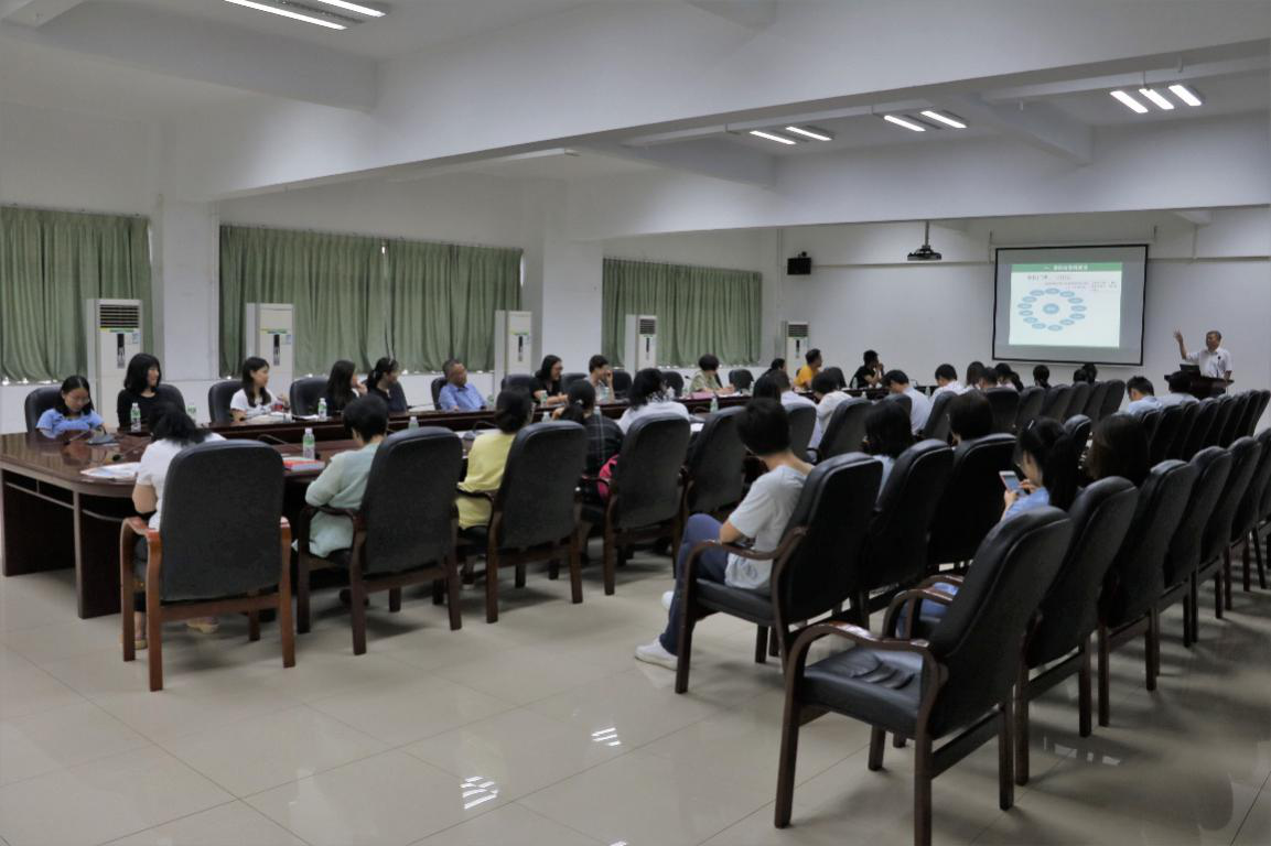 5月29日下午,由中山大学新华学院(以下简称我校)主办、学科与科技管理处承办的主题为“学科与学科人才”的学者讲坛在我校东莞校区格物楼②A208会议室举行。本次讲坛由我校校长王庭槐教授主讲,来自各院系的教师代表、各部门的管理人员与会学习。学科与科技管理处处长张玲主持讲座。