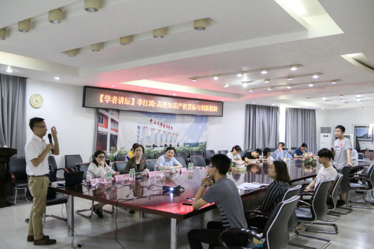在高校知识产权“贯标”工作新形势下,为激发学校师生创新活力,推进学校科学、高效地进行知识产权管理建设工作。4月24日,由中山大学新华学院(以下简称我校)主办,中山大学新华学院学科与科技管理处承办,主题为“高校贯标与知识产权运营管理”的学者讲坛在广州校区第二会议室举办。讲座特邀广东技术师范大学管理学院院长、广东省知识产权局广东知识产权专家库首批入库专家李江涛教授同李江涛教授研究团队的吴蕊主任共同作有关高校知识产权的价值评估分享。学校各职能部门有关负责人、各院系从事科研及相关工作教职工参会。我校学科与科技管理处处长张玲主持讲座。