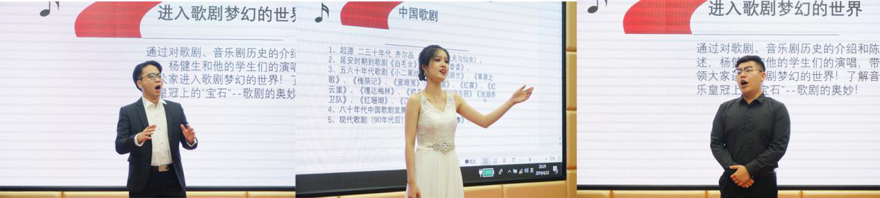 接着,杨健生的学生余湘粤、张毅、苏雯分别演唱了古诺歌剧《浮士德》、莫扎特歌剧《唐·璜》、马斯卡尼歌剧《乡村骑士》、普契尼歌剧《曼侬·列斯库》等著名歌剧咏叹调,演出引起现场老师、同学们的强烈共鸣。
