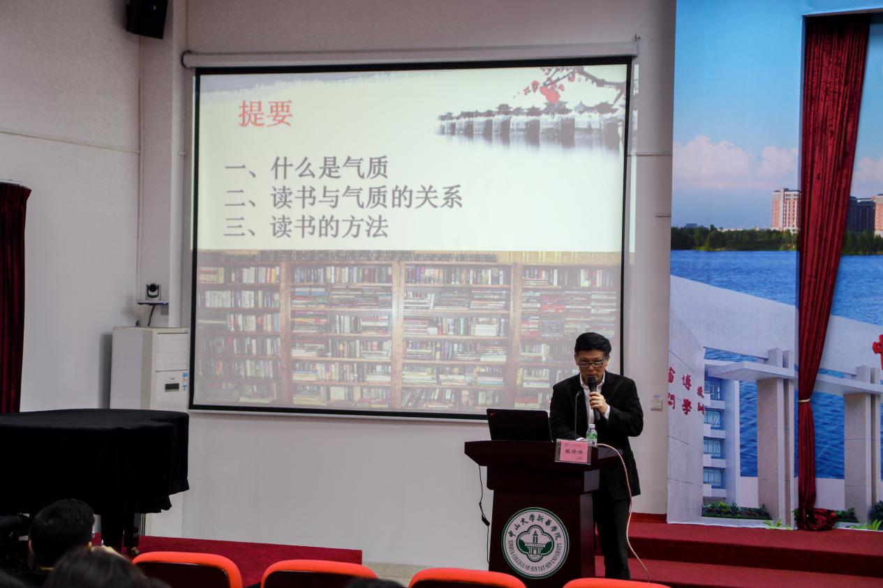 4月15日,由中山大学新华学院(以下简称我校)主办,学科与科技管理处、音乐系大学美育教研室承办的主题为“腹有诗书气自华——读书与气质漫谈”的学者讲坛在东莞校区定静楼①F203举行。本次讲座由广东技术师范大学教授、国家语言资源保护工程核心专家组专家、原汕头大学副校长、原韩山师范学院院长林伦伦主讲,我校音乐系学术顾问杨健生副教授主持讲座。艺术与传媒学院院长蔡照波,音乐系副主任田丁,音乐系教师代表及全体学生参加讲座。