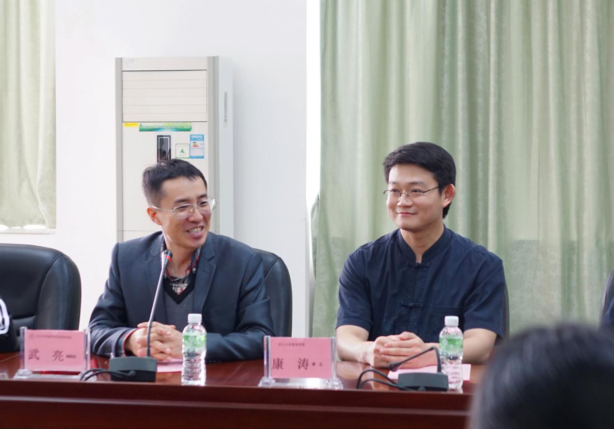 管理学院副院长武亮(左)致辞并欢迎康涛博士(右)的到来