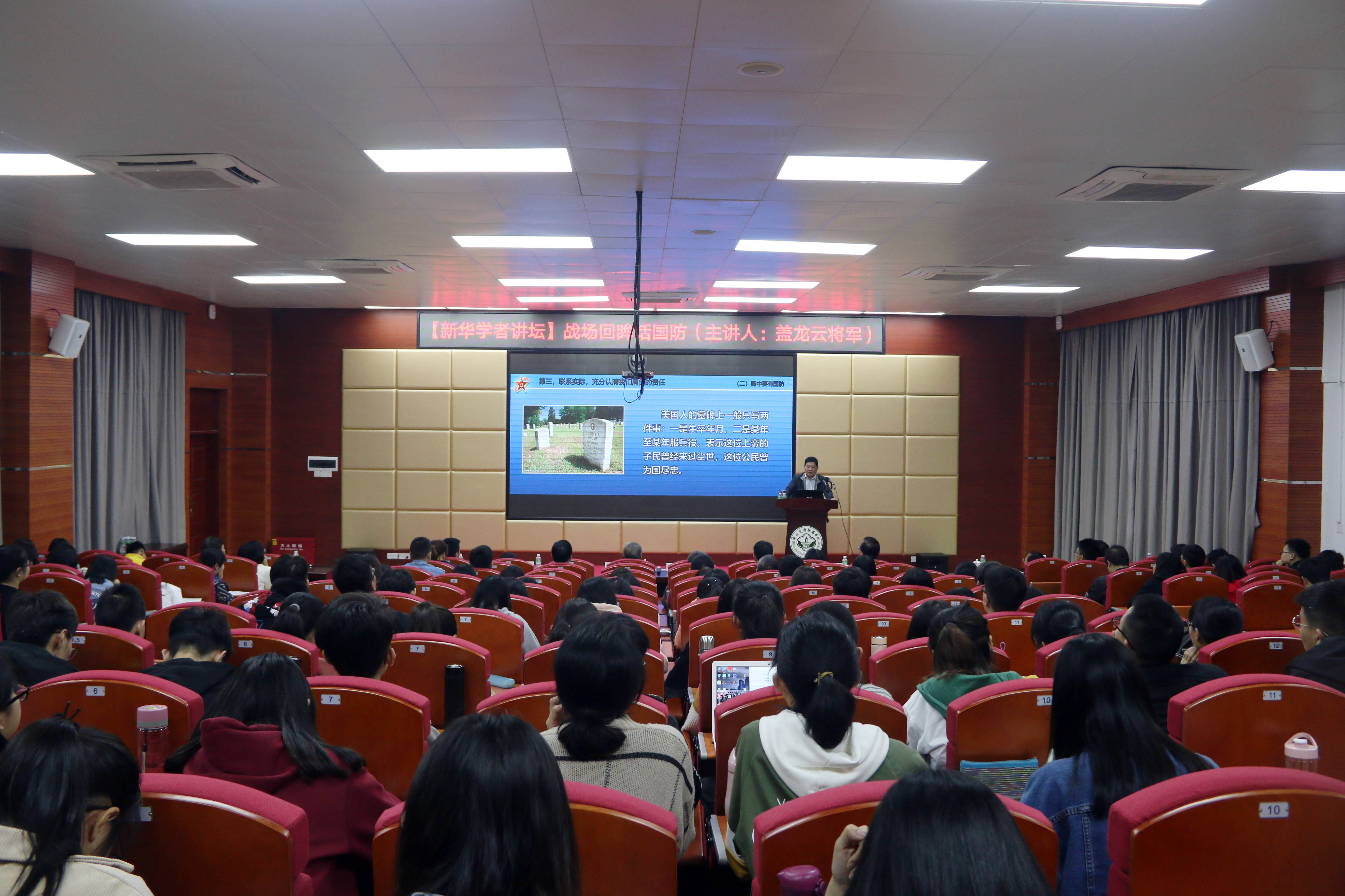 3月11日,由中山大学新华学院主办,中山大学新华学院校长办公室、党委办公室,学科与科技管理处承办的主题为“战场回眸话国防”讲座在广州校区教学楼D101讲学厅举行。本次讲座特邀中国人民解放军原广东省军区司令员、海军东海舰队副参谋长、军事科学院特约研究员盖龙云将军担任主讲嘉宾,我校校长王庭槐教授主持讲座。