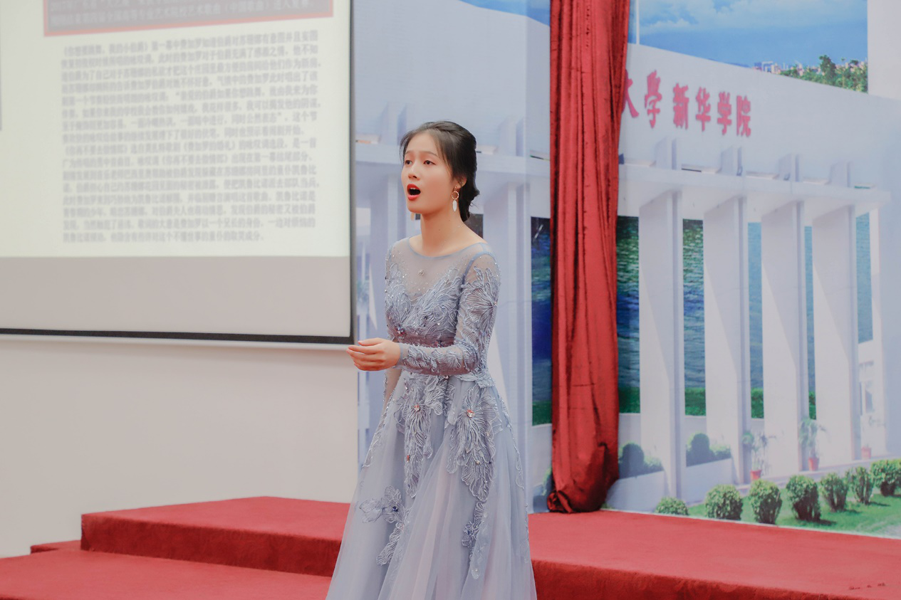 6月14日晚,由共青团中山大学新华学院委员会、中山大学新华学院学科与科技管理处联合承办,中山大学新华学院艺术团协办的以“音乐伴随你的大学时光——艺术·人生·美”为主题的音乐讲座在我校东莞校区开展。此次讲座特邀男低音歌唱家,广东外语外贸大学艺术学院音乐系主任,声乐副教授杨健生担任主讲嘉宾。校学生会常务秘书长、学生艺术中心副主任帅莉担任讲座主持人。