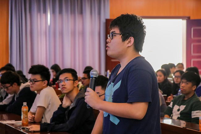 在互动环节中,现场师生积极发言提问。针对师生提出“对粤港澳大湾区创新驱动力提些建议及评价”、“湾区中的高等学府应有怎样的战略性发展,怎样更好地培养人才?”等问题陈晓林给予了详细的解答。他认为,深圳的科技创新力最强,被誉为中国的“硅谷”,但由于人才大部分集中于首都,对于大湾区创新驱动力的评价有所保留,而湾区中的高等学府应该更多地互联互通,营造更好更浓厚的学术氛围。陈晓林说:“大湾区的建设将会给珠三角地区带来翻天覆地的变化,祖国好,香港也好!香港好,祖国也更好!”