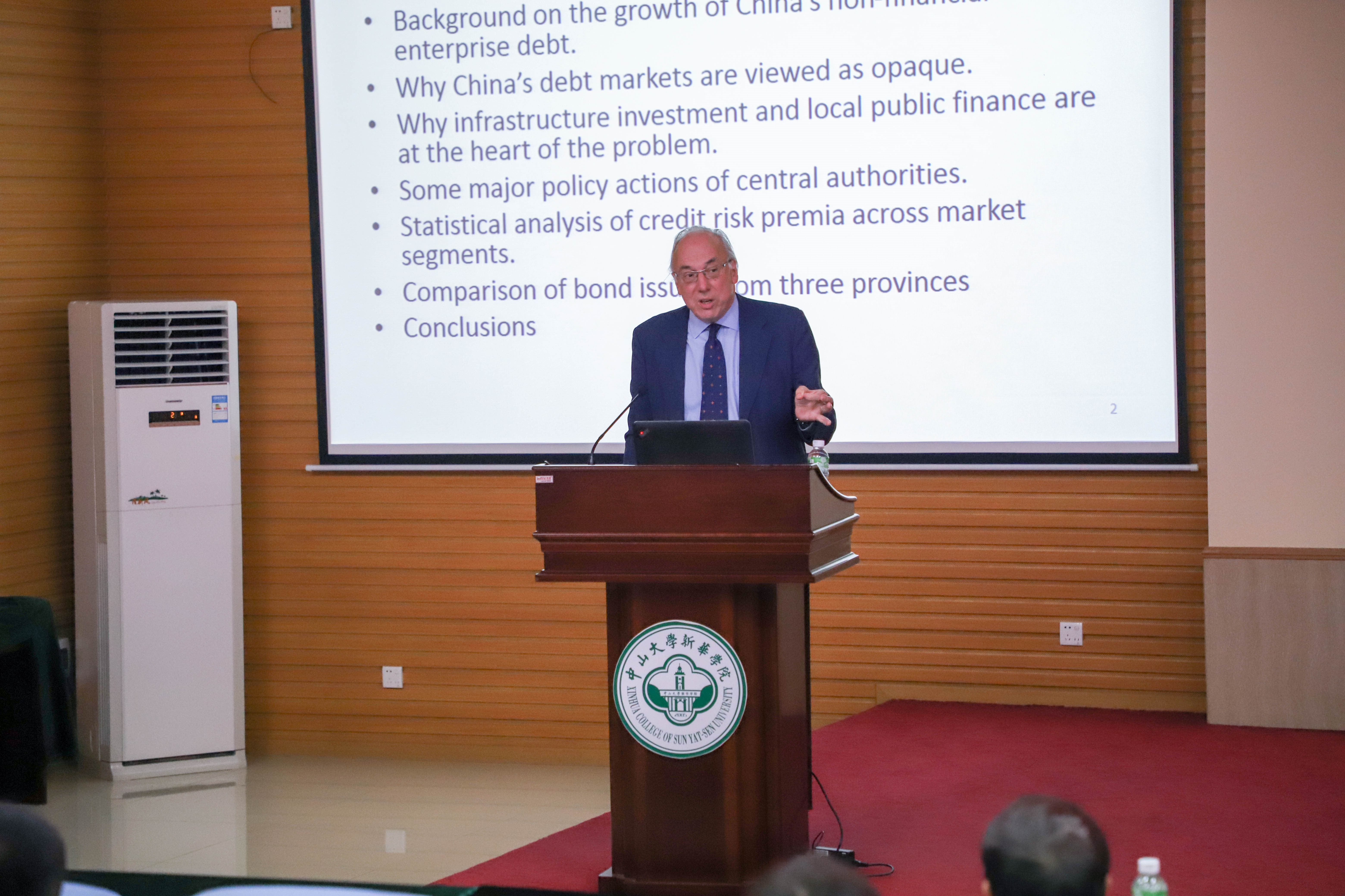 11月7日下午,世界著名经济学家、伦敦政治经济学院金融学教授、中山大学新华学院(以下简称“我校”)经济与贸易学院金融工程专业首席教授、投资学专业学科带头人Ron Anderson教授再次来到我校讲学,他带来了一场题为"Understanding China’s Evolving Credit Risk Maze"(剖析中国资本市场信用风险的演变路径)的学术讲座。本场讲座由经济与贸易学院副院长周开国教授主持、王艾嘉老师翻译。