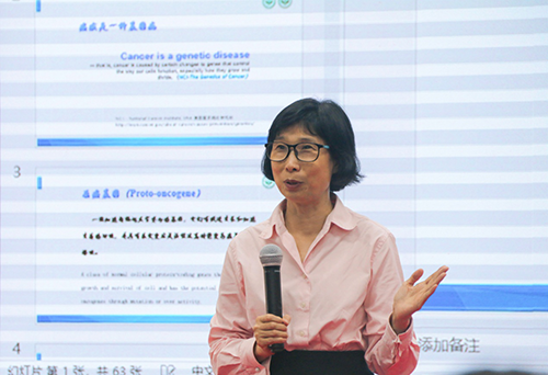 讲座以肿瘤的发生及发展为出发点,重点讲解肿瘤靶向药物及其作用原理。王一鸣教授在讲座中为同学们详细介绍了肿瘤细胞异常分裂的过程以及肿瘤的分类,包括遗传性肿瘤及散发性肿瘤(即生殖细胞与体细胞的癌变),原癌基因与抑癌基因的概念,并指出:这两种基因作为引发肿瘤的内因可看作是先天因素,这种基因既来自于家族遗传,也可能向下一代延续。