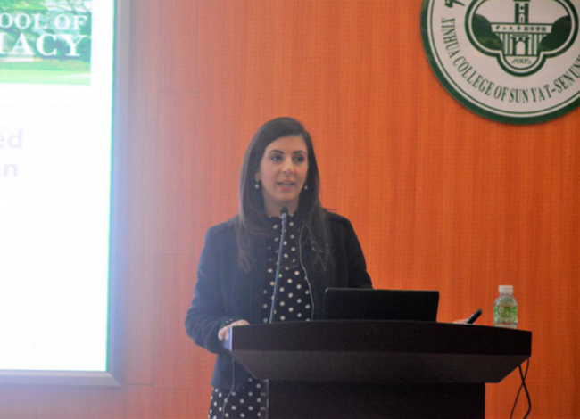 3月22日上午,由中山大学新华学院(以下简称学校)主办、学科与科技管理处和药学院共同承办的主题为“The role of G alpha proteins in GPCR mediated transactivation of kinase receptors in cardiovascular disease”的学者讲坛在广州校区第一会议室举行。澳大利亚昆士兰大学Danielle Kamato博士担任主讲嘉宾,药学院办公室主任曹颖男主持讲坛,药学院院长陈家树、党总支副书记陶强及药学院师生代表共同参与此次讲坛。