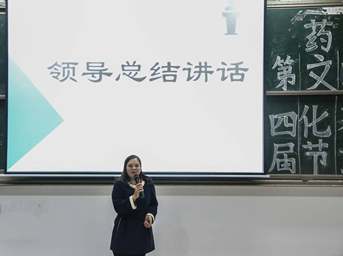 张素中副院长对梁超峰教授带来的精彩讲座表示十分感谢。同时也为药学院第四届药文化节圆满结束寄语祝贺,张素中阐述了举办药文化节的初衷、过程以及重要意义,表示希望通过药学院文化节培养同学们的课外生活情趣,增强同学们传承与发展药文化的使命感。
