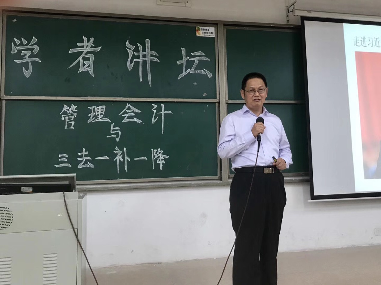 10月25日下午,由会计学院承办的新华学者讲坛----管理会计与“三去一降一补”在我校东莞校区定静楼②A202精彩开讲。此次讲座邀请会计学院院长刘运国教授做主讲嘉宾,由会计学院副院长李安兰主持,会计学院常务副院长林源、会计学专业副主任刘颖婷、财务管理专业副主任熊诗忠,学院办公室负责人吴津钰、副主任伦妙兴及会计学院师生参加了此次讲座。