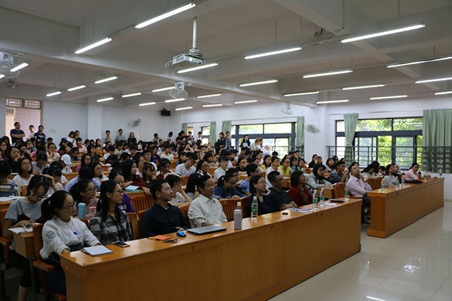 参与讲座的师生认真听讲,讲座现场座无虚席