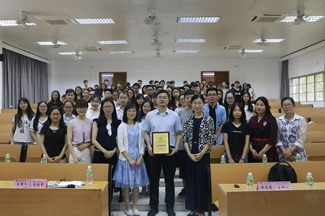 曹颖男主任为讲座作总结。她说道,彭志通先生的职场历程对我们每个人都有很好的启发和激励,彭先生能取得现在这样的成就,正是源自于他对事业的真诚热爱、认真学习的态度以及踏实做事、踏实做人的品格,希望同学多向彭志通先生学习。