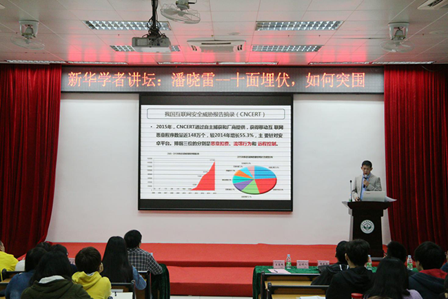 面对国内外信息安全形势严峻问题,潘主任认为,当今网络安全形势不容乐观,从世界范围来看,各种黑客攻击行为愈加猖獗,在网络空间竞争激烈化、新技术引入新问题的综合作用下,网络安全将迎来更加严峻的挑战。此外,潘主任还借用“棱镜门事件”、“希拉里邮件门事件”、“2016年网络十大安全事件”等典型案例对当今互联网安全威胁进行分析,并表示,网络边界无法判定,信息窃取手段越来越高明,传统的安全思路已难以应对大数据时代的信息安全挑战。