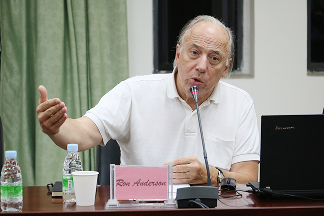 11月17日晚,应中山大学新华学院王庭槐院长邀请,Prof.Ron Anderson在中山大学新华学院经济与贸易系(下面简称“经贸系”)举行的科研经验分享讲座上,向我系教师分享了他的科研经历和治学感悟。在他看来,做好科研,兴趣、坚持和具有雄心缺一不可。