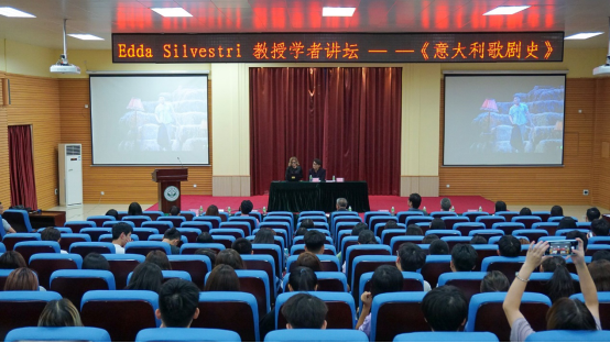 10月21日晚,为了提升学生对乐律之美的感知能力和创造力,中山大学新华学院(以下简称“我校”)艺术设计与传媒学院名誉院长,音乐系名誉主任 Edda Silvestri教授开展题为“意大利歌剧史”的学术讲座。我校校长王庭槐、校长助理刘婉莉,各职能部门负责人,音乐系副主任田丁以及全体音乐系师生出席此次讲座。讲座由音乐系学术顾问杨健生副教授主持。