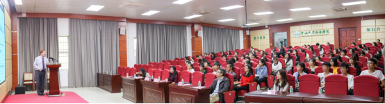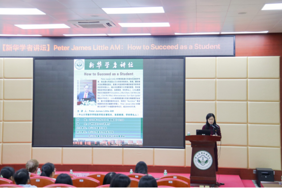 11月14日上午,由中山大学新华学院(以下简称“我校”)主办,中山大学新华学院学科与科技管理处和药学院共同承办的主题为“How to Succeed as a Student”的学者讲坛在广州校区D101讲学厅举行,本次讲坛特邀澳大利亚昆士兰大学药学院院长,我校药学院名誉院长、首席教授、学科带头人Peter James Little AM教授担任主讲人,药学院副院长曹颖男副教授主持讲座。