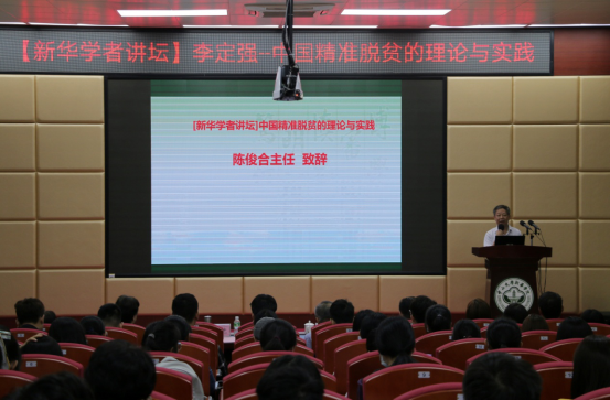 陈俊合在讲话中表示,精准脱贫是中国目前的中心工作,中国的精准脱贫具备高度的理论与现实意义,希望同学们能从李定强副院长的讲座中得到启发,学有所获。