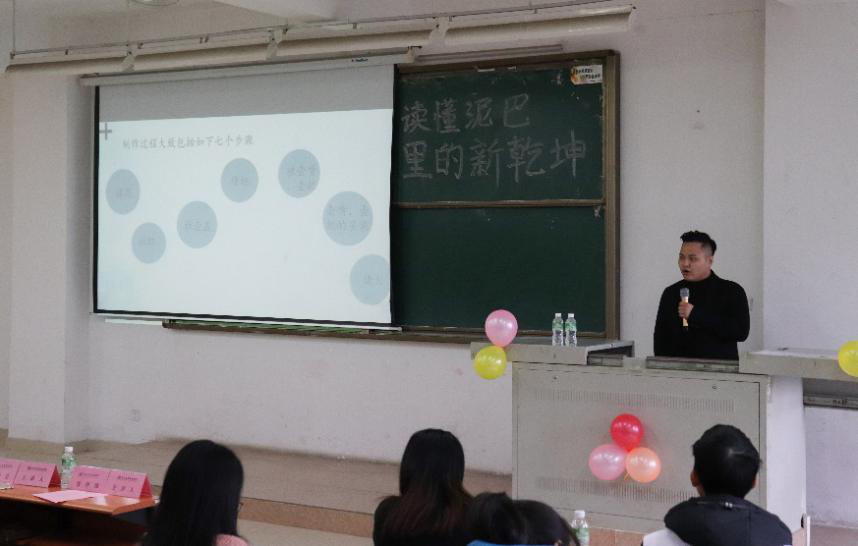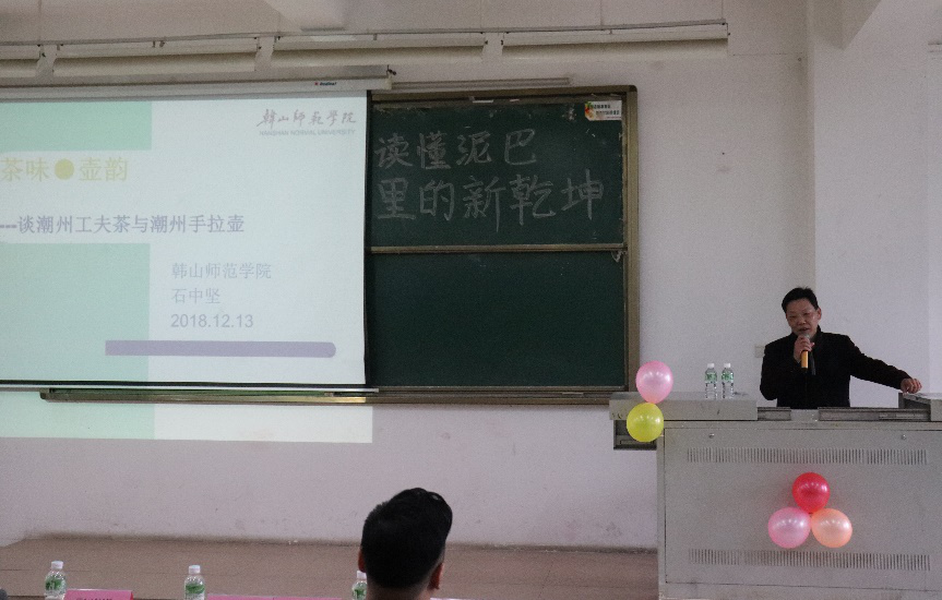 12月13日,由中山大学新华学院校友会主办的,主题为“读懂泥巴里的新乾坤”的讲座在中山大学新华学院(以下简称“我校”)东莞校区定静楼①D202开讲。此次讲座诚邀韩山师范学院文化人类学石中坚教授以及我校14级艺术设计与传媒学院校友张泽锋担任主讲嘉宾。