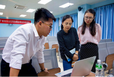 教师与项目工作人员交流学习
