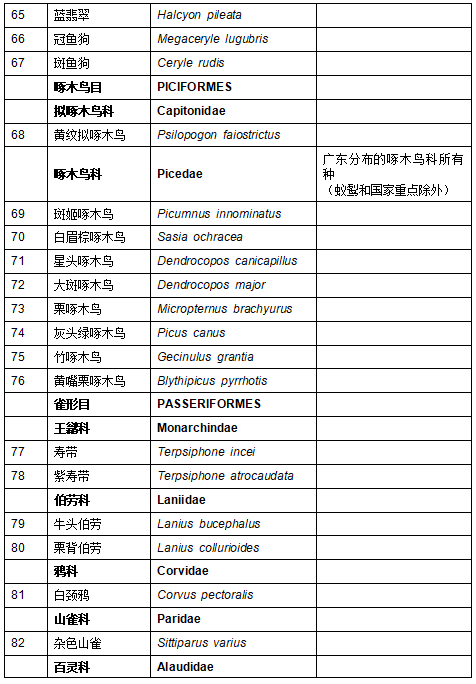 日前,经省人民政府同意,广东省林业局正式印发《广东省重点保护陆生野生动物名录》。新版《名录》由原先的81个物种增加到现在146个物种。其中哺乳类10种,鸟类107种,爬行类14种,两栖类12种,昆虫类3种。特别是增加了蝙蝠类和昆虫类,弥补了以往名录的不足。