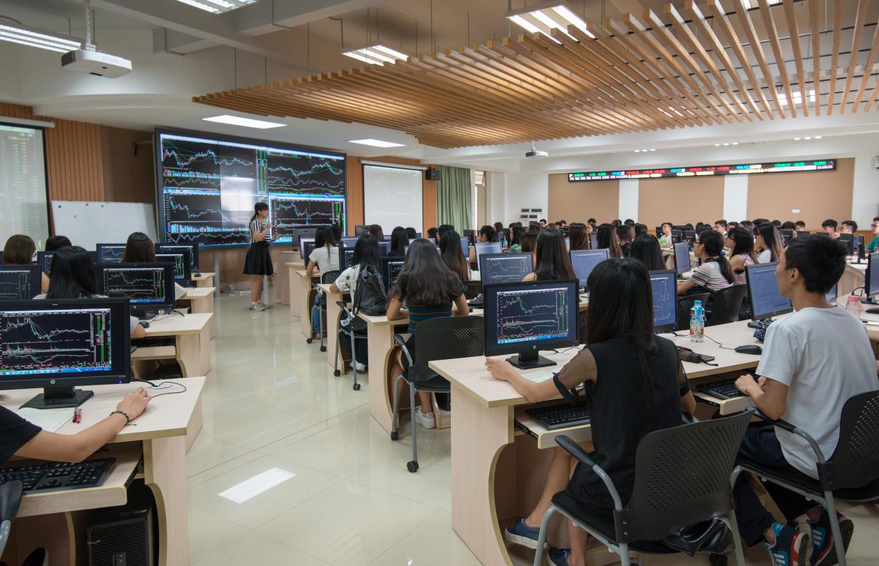 学生在金融衍生品实验室上课