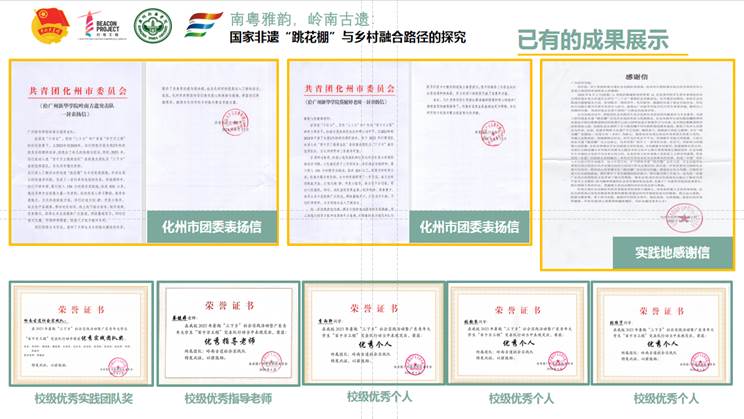 3.公益实践:学院开展"三下乡"公益实践,聚焦文化遗产保护与活化利用,推动文旅融合赋能乡村振兴。连续两年深耕非遗"跳花棚"研究,与实践地建立长效合作机制,成果转化至挑战杯、攀登计划等赛事,育澳晨曦实践队入选2024年气象防灾减灾全国志愿活动。