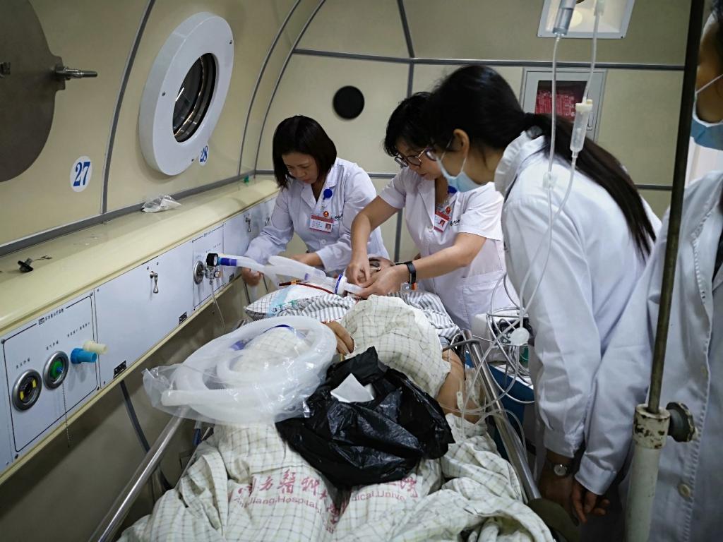 学生在带教老师指导下学习高压氧治疗