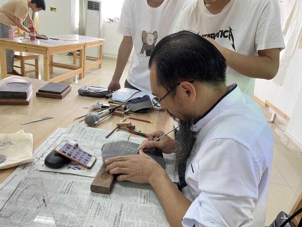 教师示范雕刻过程
