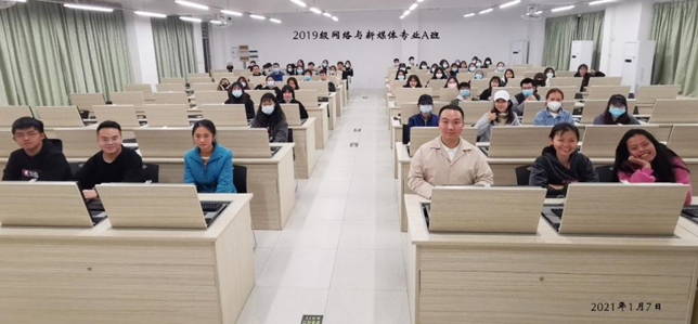 网络与新媒体学生在机房进行专业学习的集体合照