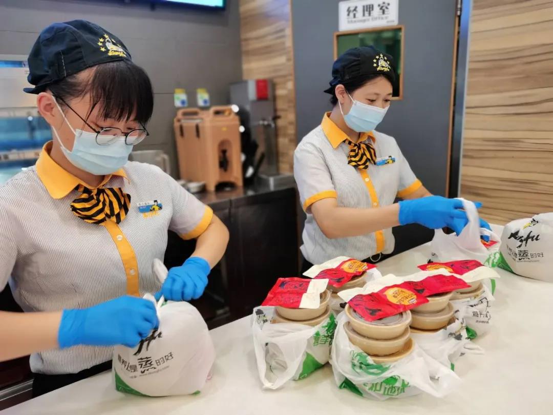 同鸿骏、拾福佃一样为新华学院配餐的还有真功夫,真功夫调动了该公司在麻涌附近20家餐厅全员共同参与,通宵备餐。其中,包装也是一个难题,要把所有制作好的餐食打包到包装袋里,需要统筹门店所有人力资源,一份一份完成,再运送到学校,方便进行分发。为此,不少员工一天最多只休息3个小时。真功夫副总裁刘波告诉记者:“真功夫用了不足24小时就完成配餐供应方案并实现了8000多人的供餐, 全力以赴确保供餐的安全、准时、准点、保质、保量,我们做到了”。