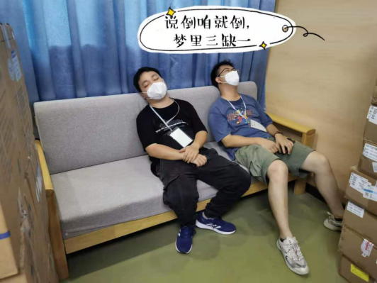 无论是烈日炎炎,还是风雨交加,抗疫一线老师们都始终坚守岗位,几乎没有多少时间休息,生怕一分一秒的怠慢,学生们就吃不上热饭,拿不到干粮,随处可见老师们汗流浃背仍坚持搬运物资,凌晨通宵统计数据,忙到半夜席地休息的身影,却仍然保持着耐心、细心、专心、热心和爱心,时刻关心同学们的状态,积极回应同学们的诉求。