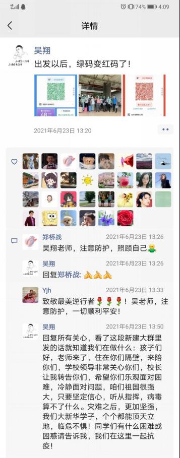 6月21日这天感觉异常漫长,虽然加入疫情防控学生工作群的时候已经是中午了,但之后我才真切体会到抗疫一线真的是争分夺秒。与分配的辅导员对接后,我主要协助落实每日的报平安打卡,以及加入到学生群里,了解学生的需求,及时解答和反馈。