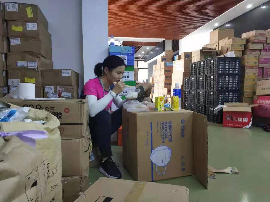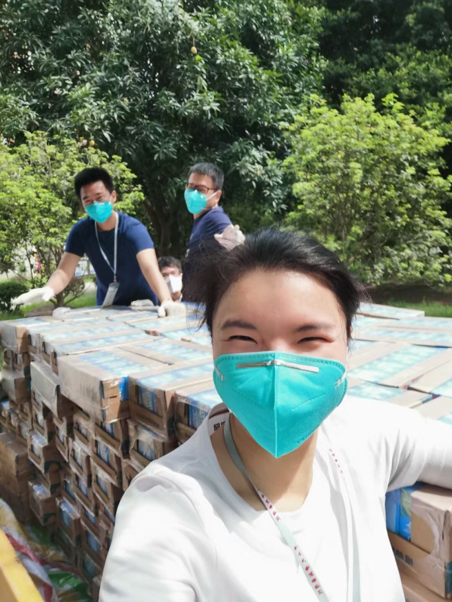 在工作期间,蒋晓晨面临的困难也是数不胜数,最主要的困难是志愿者人手不够。在运送物资时,由于人力资源有限,每一个志愿者都要付出更大的努力将急需物资运送给新华学生。每一名志愿者都要佩戴好N95口罩做好自身防护,而戴着密不透风的口罩干重活也更辛苦。在炎热的天气下,佩戴口罩下的面庞不一会儿就大汗淋漓,但是蒋晓晨依然坚守在自己的岗位上,决不退缩。