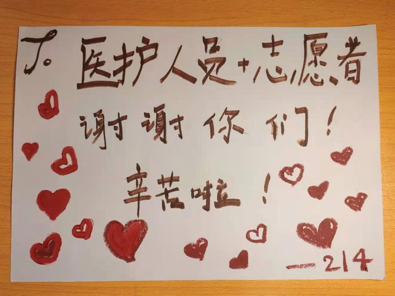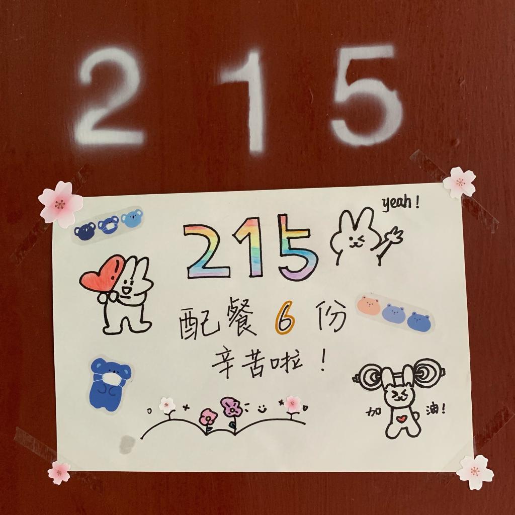 同学们在门口张贴的配餐答谢画纸