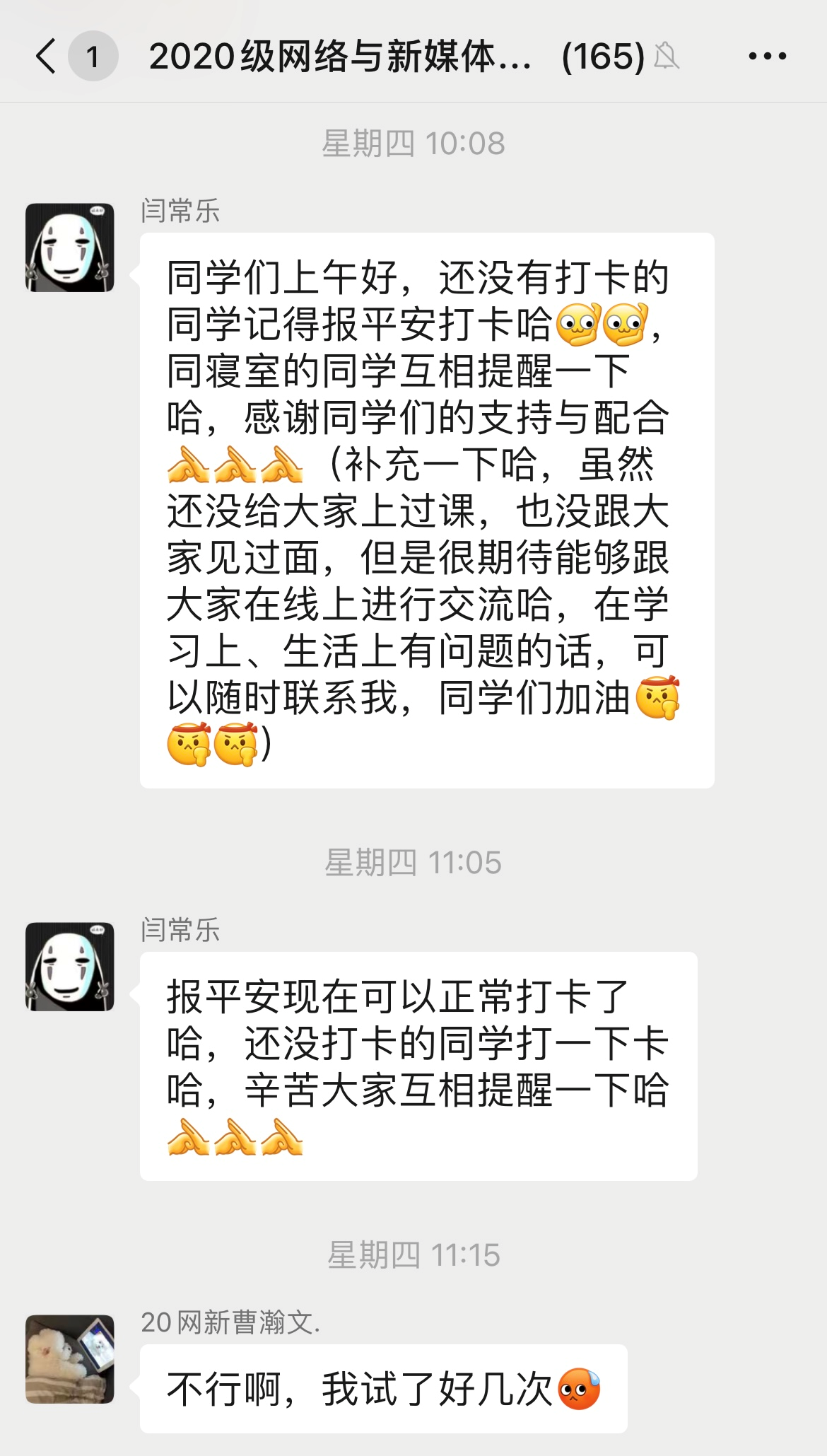 闫常乐老师提醒同学们完成每日健康打卡